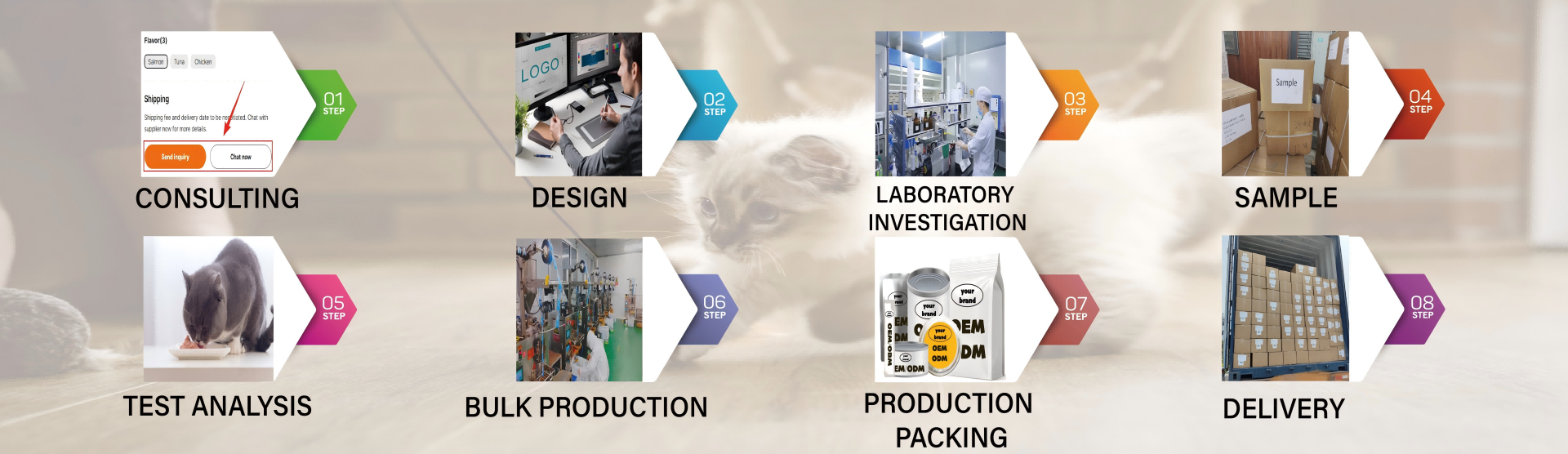 our R&D team will help you develop a new formula to suit your needs, with professional pet nutrition consultants to build your brand.